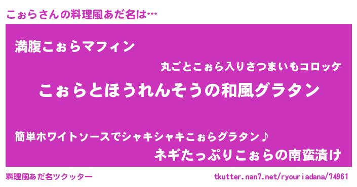 | 可愛いあだ名 | 『こぉぷりん』『こぉらママ』 |