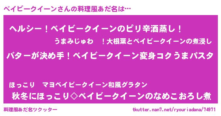 | 女子向けラノベタイトル風あだ名 | 『ベイビークイーン恋絵巻』 |