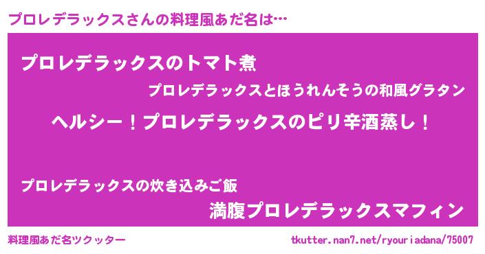 | 男性向けラノベタイトル風あだ名 | 『Re:プロレデラックスから始める異世界生活』 |