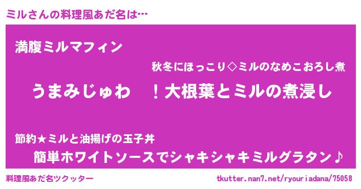| ファンタジー風あだ名 | 『エターナルミルー』『ミルディッシュ』 |