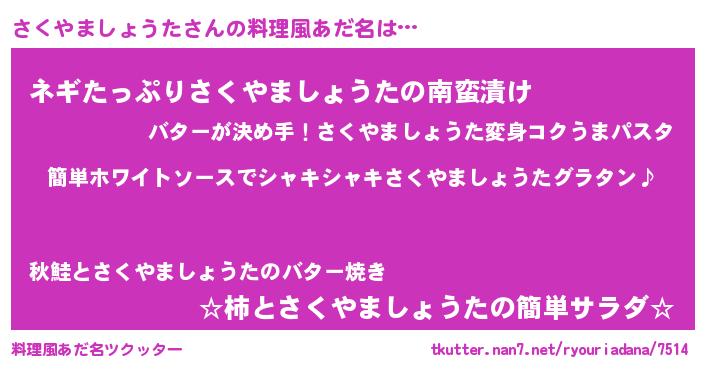 | 男性向けラノベタイトル風あだ名 | 『さくやましょうたの嫁は女の子じゃないと思った?』 |