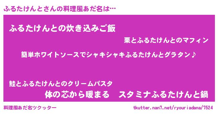 | 男性向けラノベタイトル風あだ名 | 『ふるたけんとの嫁は女の子じゃないと思った?』 |