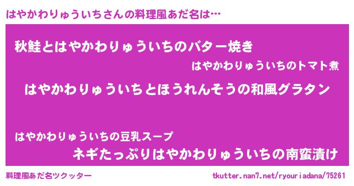 | ヘコむあだ名 | 『はやかわりゅういち(笑)』『はやっふぃ~』 |