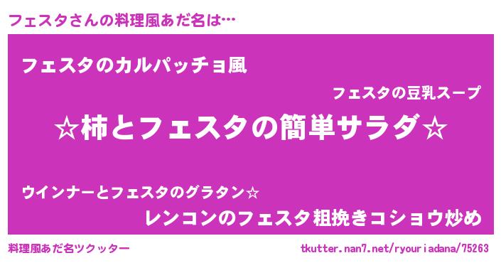 | 男性向けラノベタイトル風あだ名 | 『緋弾のフェスタ』『魔弾の王とフェスタ』 |