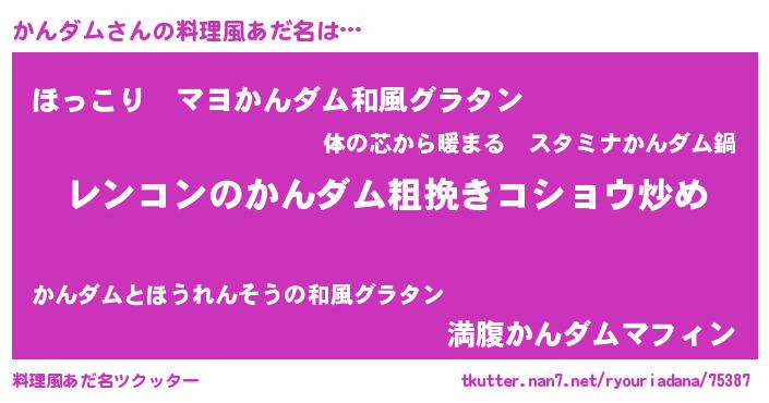 | 胡散臭い通販商品みたいなあだ名 | 『ガンによく効く高麗人参…その名も「かんダム」』 |