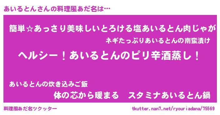 | 男性向けラノベタイトル風あだ名 | 『Re:あいるとんから始める異世界生活』 |