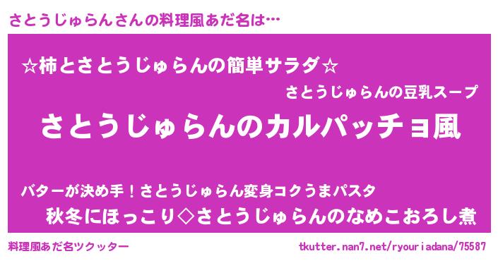 | 意味不明あだ名 | 『住所不定無職さとうじゅらん(6歳)』 |