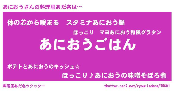 | 恥ずかしいあだ名 | 『あにっちょ』『プリティーあにおう』 |