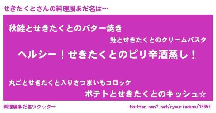 | ヘコむあだ名 | 『せきたくと(笑)』『せきを』 |