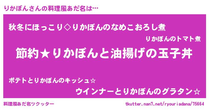 | 男性向けラノベタイトル風あだ名 | 『りかぼんの憂鬱』 |