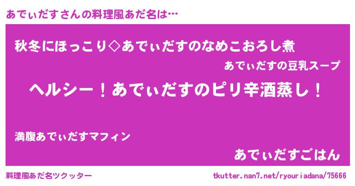 | ヘコむあだ名 | 『あでを』『あでぃだす(遠い目)』 |