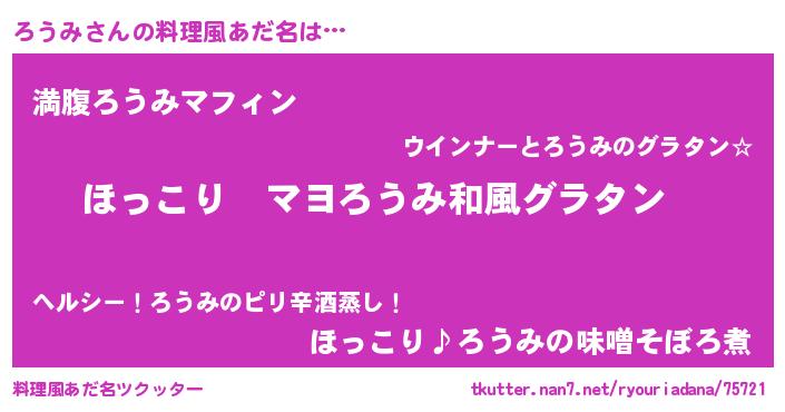 | ヘコむあだ名 | 『ろうみ(笑)』『ろうふぇ~』 |