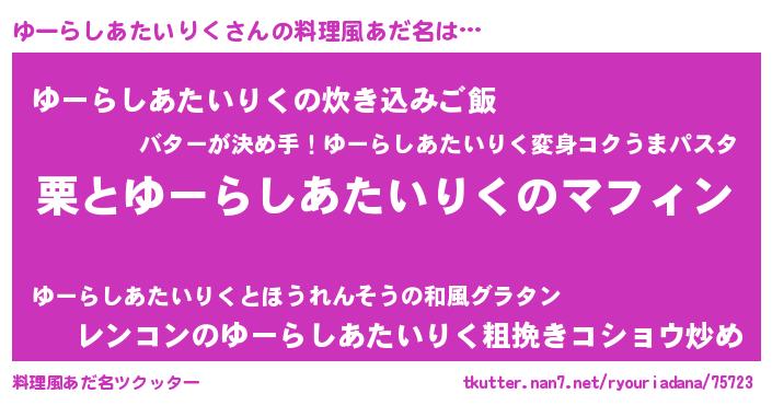 | 男性向けラノベタイトル風あだ名 | 『はたらくゆーらしあたいりくさま!』 |