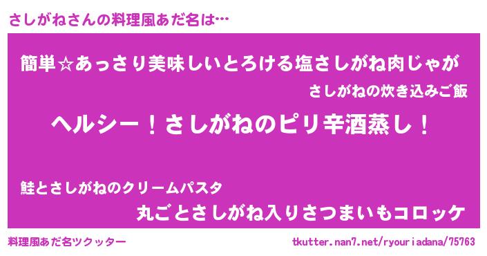 | 男性向けラノベタイトル風あだ名 | 『Re:さしがねから始める異世界生活』 |