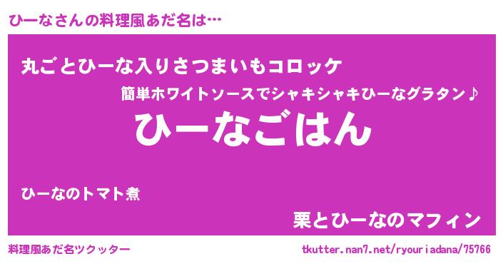 | 男性向けラノベタイトル風あだ名 | 『転生したらひーなだった件』 |