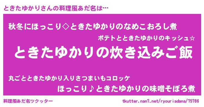 | 恥ずかしいあだ名 | 『プリティーときたゆかり』『ときっちょ』 |