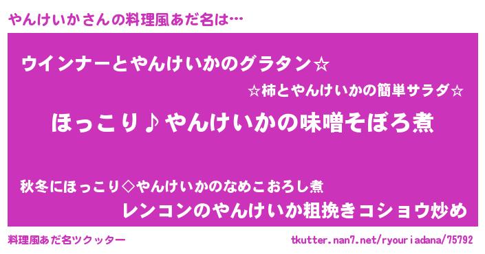 | 胡散臭い通販商品みたいなあだ名 | 『必ず成功する霊験あらたかなお札…その名も「やんけいか」』 |