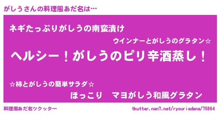 | 男性向けラノベタイトル風あだ名 | 『Re:がしうから始める異世界生活』 |
