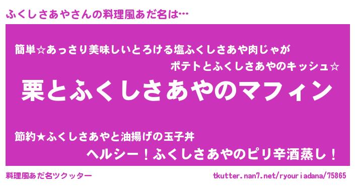 | ヘコむあだ名 | 『ふくしさあや(遠い目)』『ふく太郎』 |