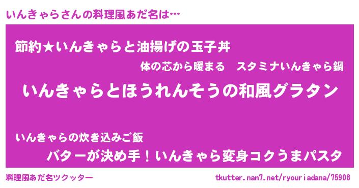 | 意味不明あだ名 | 『ニラ科いんきゃら属』『自称いんきゃら』 |