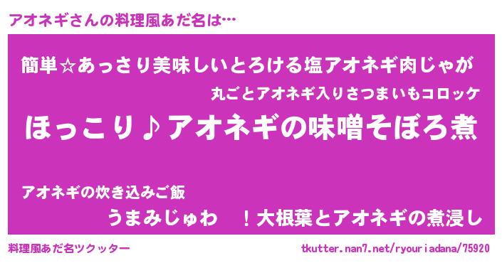 | 意味不明あだ名 | 『ペロリンアオネギ』『永久保存アオネギ』 |
