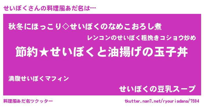 | 意味不明あだ名 | 『ペロリンせいぼく』『自称せいぼく』 |