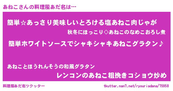 | ヘコむあだ名 | 『あねぷりん』『あねこ(笑)』 |