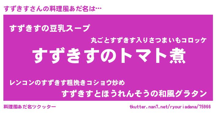 | ヒーロー風カッコイイあだ名 | 『正義の使者すずきす』『魔戒騎士スズ』 |