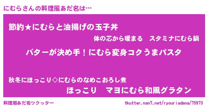 | 女子向けラノベタイトル風あだ名 | 『にむら恋絵巻』『にむら姫と円卓の騎士』 |