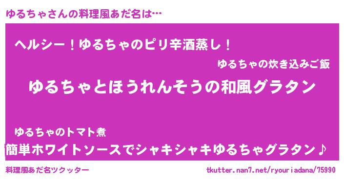 | 女子向けラノベタイトル風あだ名 | 『ゆるちゃの玉の輿計画!』 |