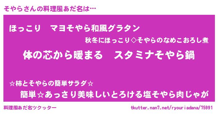 | ポケモン風あだ名 | 『ソヤラダネ』『ソーヤイ』 |