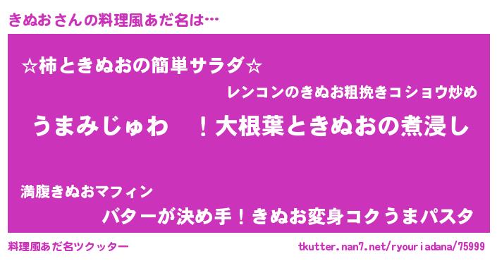 | 女子向けラノベタイトル風あだ名 | 『きぬおの婚約者』『きぬお恋絵巻』 |