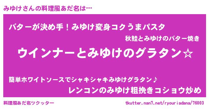 | 意味不明あだ名 | 『みゆけフォーエバー』『自称みゆけ』 |