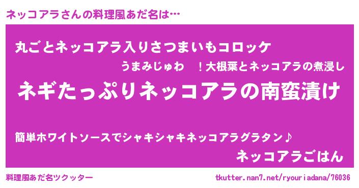 | 男性向けラノベタイトル風あだ名 | 『ネッコアラアートオンライン』 |