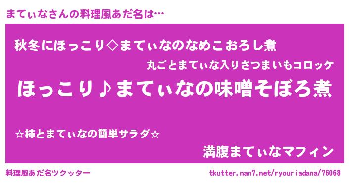 | 女子向けラノベタイトル風あだ名 | 『(仮)まてぃなのやんごとなき事情』 |