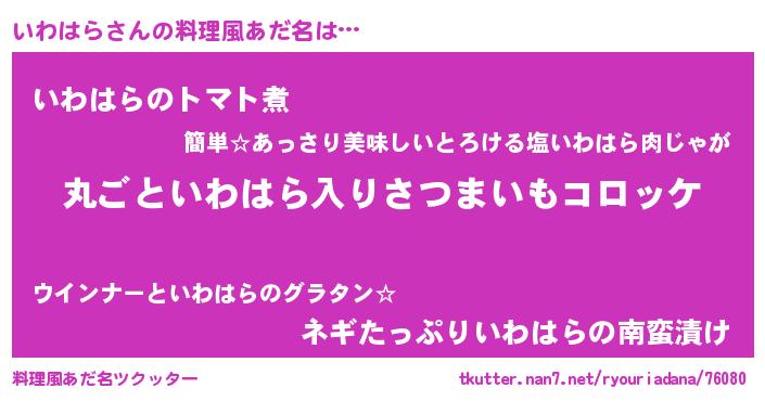 | 男性向けラノベタイトル風あだ名 | 『この素晴らしい世界にいわはらを!』 |