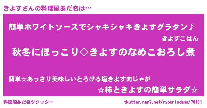 | 男性向けラノベタイトル風あだ名 | 『きよすに滅ぼされるだけの簡単なお仕事です』 |