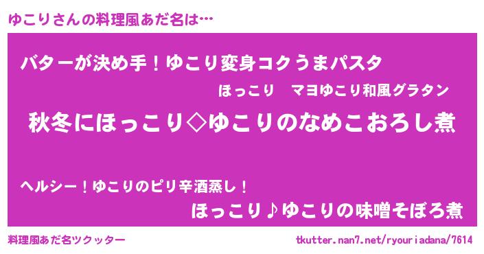| 意味不明あだ名 | 『眠気覚ましガムゆこり味』『自称ゆこり』 |