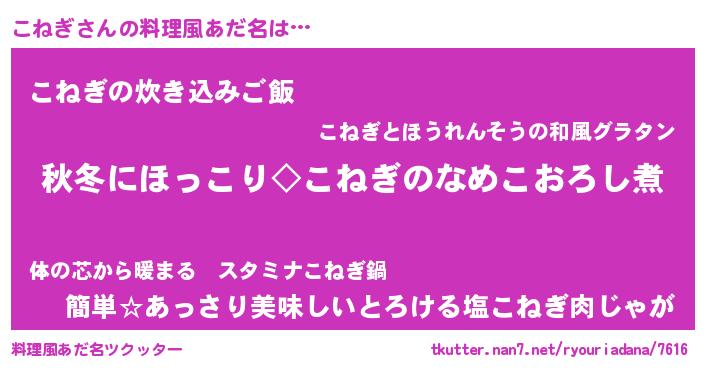 | 意味不明あだ名 | 『永久保存こねぎ』『つくし科こねぎ属』 |