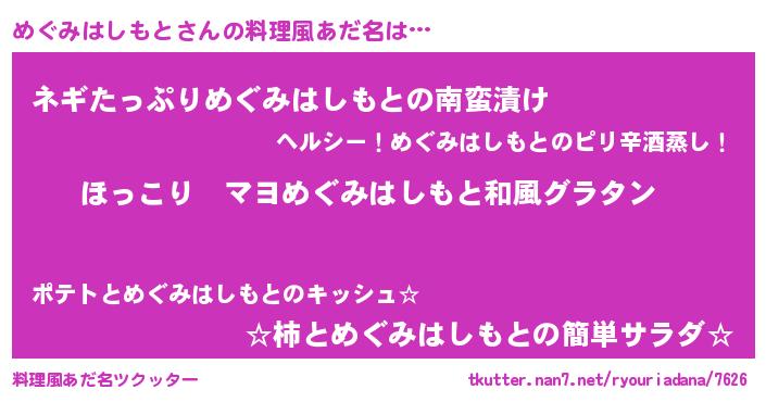 | 意味不明あだ名 | 『住所不定無職めぐみはしもと(62歳)』 |
