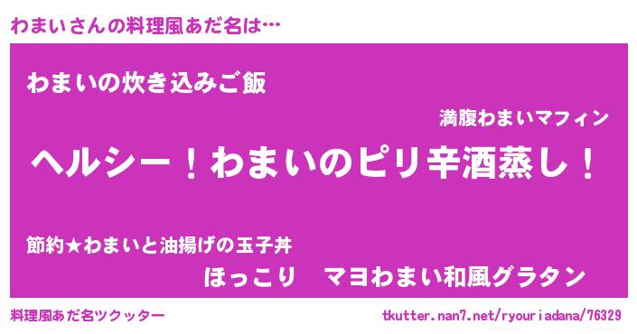 | 男性向けラノベタイトル風あだ名 | 『Re:わまいから始める異世界生活』 |