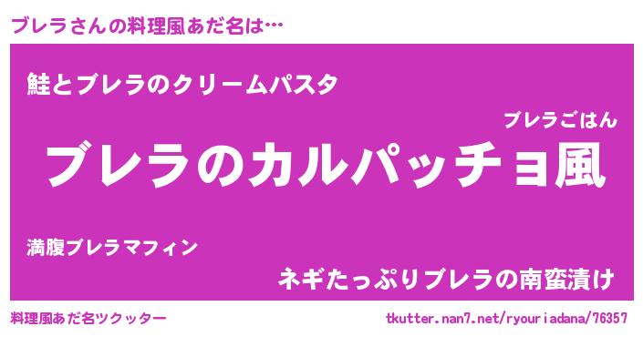 | 男性向けラノベタイトル風あだ名 | 『魔弾の王とブレラ』『ブレラスレイヤー』 |