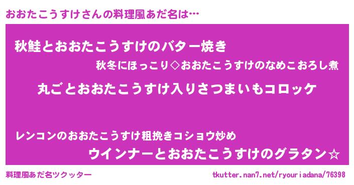 | 女子向けラノベタイトル風あだ名 | 『乙女ゲームの破滅フラグしかない悪役おおたこうすけに転生してしまった…』 |