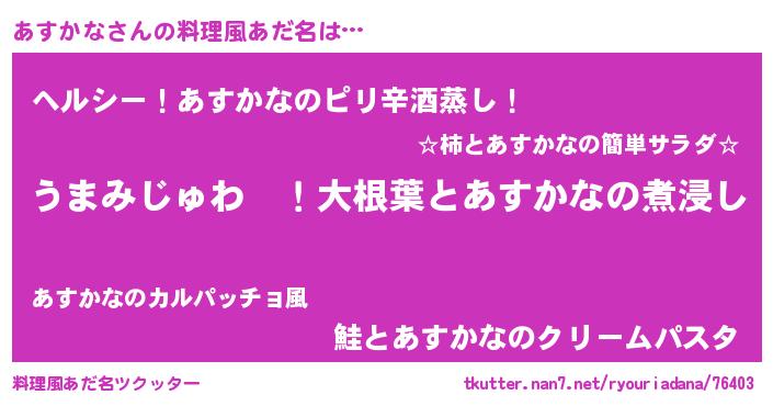 | 意味不明あだ名 | 『あすかなフォーエバー』『自称あすかな』 |