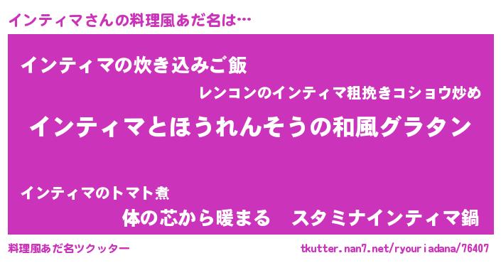 | 胡散臭い通販商品みたいなあだ名 | 『運命の人と巡り会える高級そうな壺…その名も「インティマ」』 |