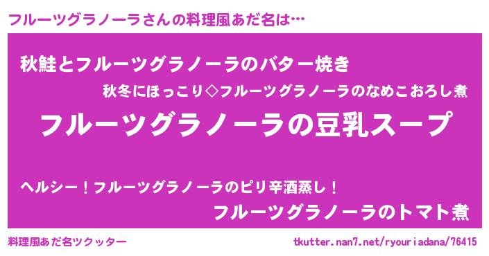 | 萌えアニメ | 主人公(フルーツグラノーラ)のあだ名『フルーツグラノーラにゃん』 |