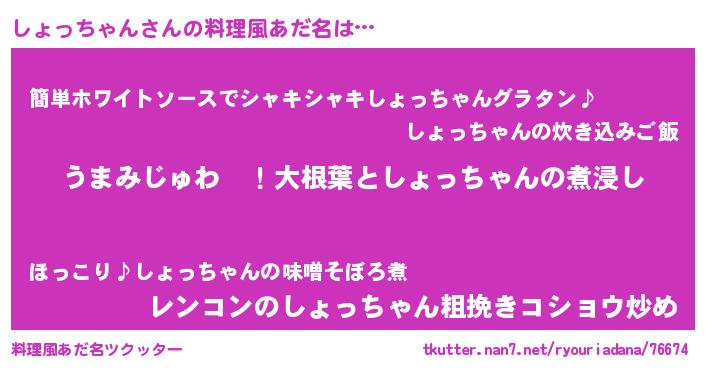 | 意味不明あだ名 | 『しょっちゃんフォーエバー』 |