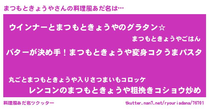 | 男性向けラノベタイトル風あだ名 | 『ノーゲーム・ノーマツモトキョウヤ』 |