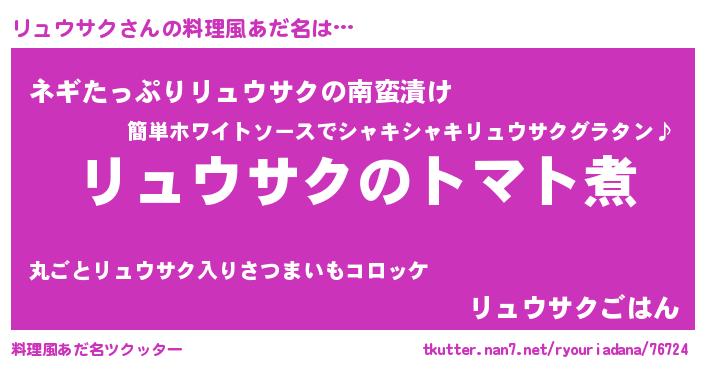 | 男性向けラノベタイトル風あだ名 | 『おまえをオタクにしてやるから、俺をリュウサクにしてくれ! 』 |