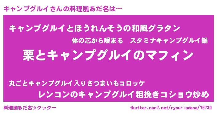 | 意味不明あだ名 | 『なめこ科キャンプグルイ属』 |